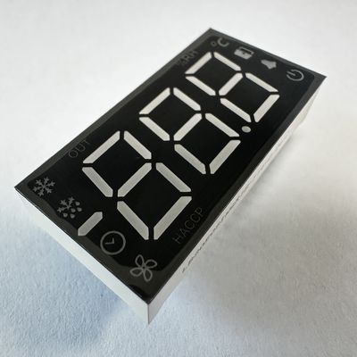 Multi-color 3 1/2 digit 7 segment LED display designed for kitchen hood applications with ultra bright white illumination.